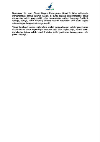 "Yang dimaksud vaccine nationalism adalah pengembangan vaksin yang hanya