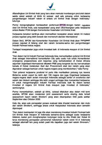 "Dan dalam hal ini industri Farmasi Indonesia bisa memanfaatkan potensi Uni Emirat