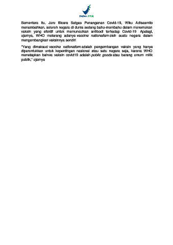 "Yang dimaksud vaccine nationalism adalah pengembangan vaksin yang hanya