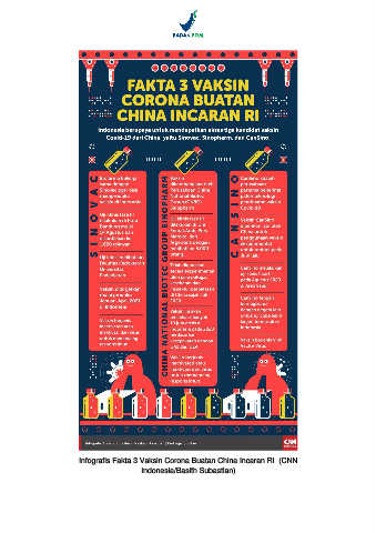 Infografis Fakta 3 Vaksin Corona Buatan China Incaran RI. (CNN Indonesia/Basith Subastian)