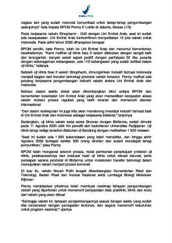 Pada kerjasama vaksin Sinopharm - G42 dengan Uni Emirat Arab, saat ini sudah