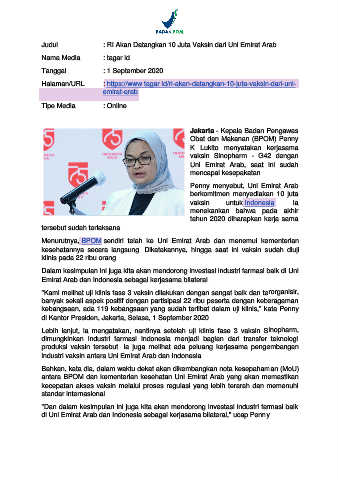 Judul : RI Akan Datangkan 10 Juta Vaksin dari Uni Emirat Arab