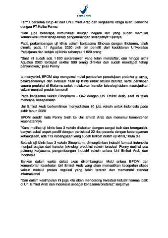 Pada kerjasama vaksin Sinopharm - G42 dengan Uni Emirat Arab, saat ini telah
