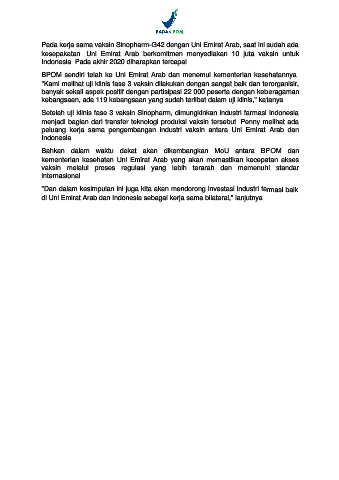 Pada kerja sama vaksin Sinopharm-G42 dengan Uni Emirat Arab, saat ini sudah ada