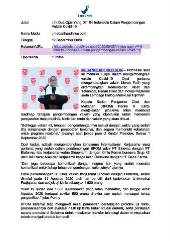 Page 207 - Keterangan Pers Kepala Badan POM dan Juru Bicara Satgas Penanganan COVID-19 di Istana Kepresidenan Jakarta
