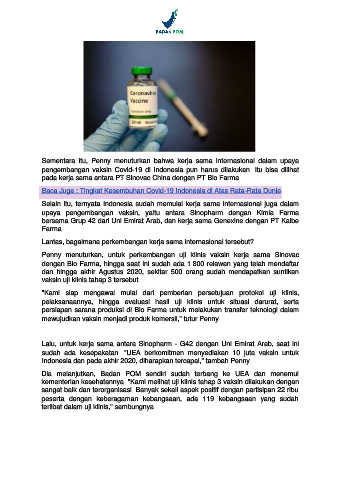 upaya pengembangan vaksin, yaitu antara Sinopharm dengan Kimia Farma