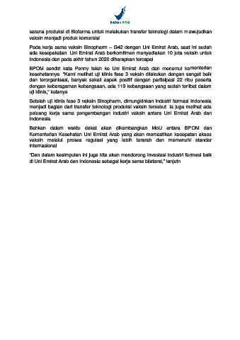 Pada kerja sama vaksin Sinopharm – G42 dengan Uni Emirat Arab, saat ini sudah