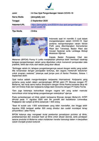 Judul : Ini Dua Opsi Pengembangan Vaksin COVID-19