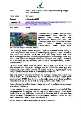 Judul : Vaksin Covid-19, BPOM Sudah Siapkan Roadmap Hingga