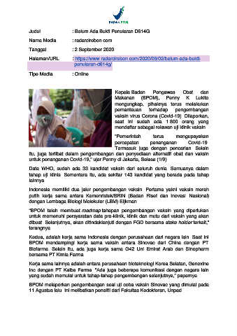 Judul : Belum Ada Bukti Penularan D614G