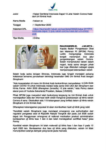 Judul : Kabar Gembira! Indonesia Dapat 10 Juta Vaksin Corona Halal