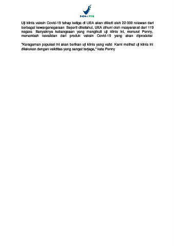 Uji klinis vaksin Covid-19 tahap ketiga di UEA akan diikuti oleh 22.000 relawan dari