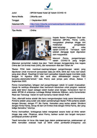 Judul : BPOM Kawal Ketat Uji Vaksin COVID-19