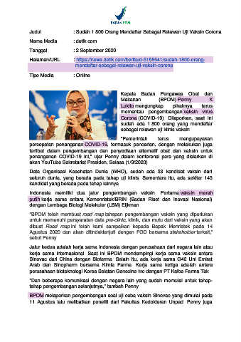 Judul : Sudah 1.800 Orang Mendaftar Sebagai Relawan Uji Vaksin Corona
