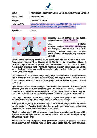 Judul : Ini Dua Opsi Pemerintah Dalam Mengembangkan Vaksin Covid-19