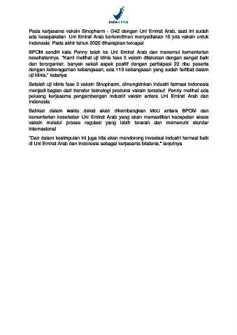 Pada kerjasama vaksin Sinopharm - G42 dengan Uni Emirat Arab, saat ini sudah