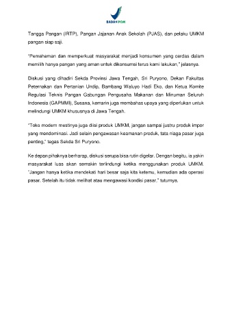 Tangga Pangan (IRTP), Pangan Jajanan Anak Sekolah (PJAS), dan pelaku UMKM