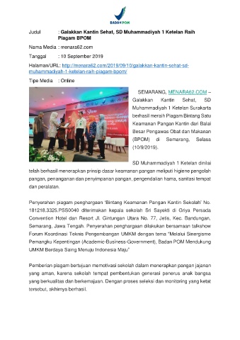 Judul : Galakkan Kantin Sehat, SD Muhammadiyah 1 Ketelan Raih