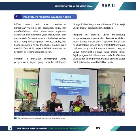 melalui Deputi II, Kepala BPOM meluncurkan hadirnya program ini menjadi selaras dengan