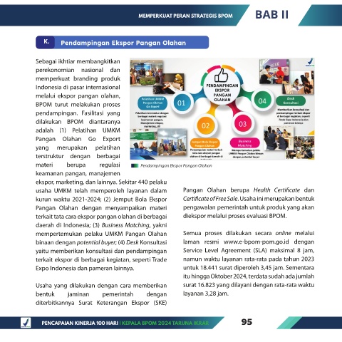 binaan dengan potential buyer; (4) Desk Konsultasi laman resmi www.e-bpom-pom.go.id dengan