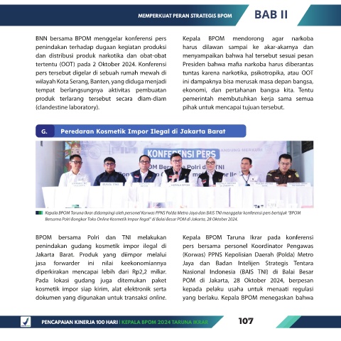 BPOM bersama Polri dan  TNI melakukan               Kepala  BPOM  Taruna  Ikrar  pada  konferensi