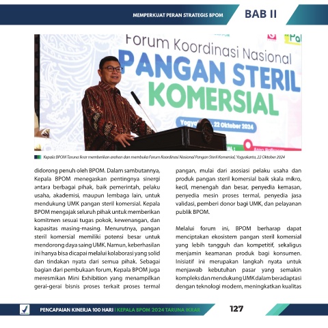 Kepala BPOM Taruna Ikrar memberikan arahan dan membuka Forum Koordinasi Nasional Pangan Steril Komersial, Yogyakarta, 22 Oktober 2024