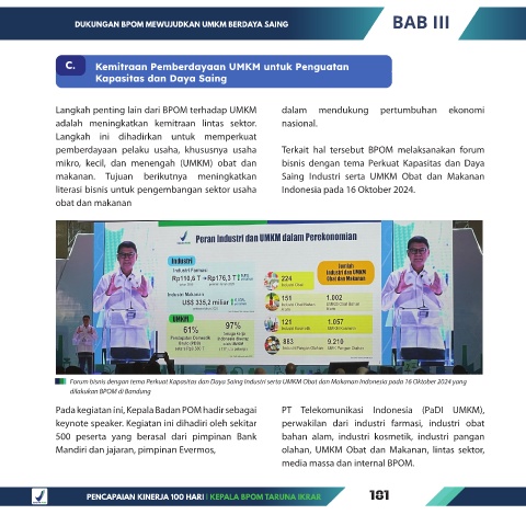 Forum bisnis dengan tema Perkuat Kapasitas dan Daya Saing Industri serta UMKM Obat dan Makanan Indonesia pada 16 Oktober 2024 yang