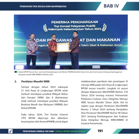 Kepala BPOM Taruna Ikrar saat meraih penghargaan dari Menteri PANRB Abdullah Azwar Anas atas hasil evaluasi kinerja penyelenggaraan