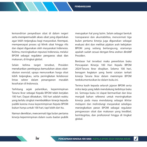 iv PENCAPAIAN KINERJA 100 HARI | KEPALA BPOM 2024 TARUNA IKRAR