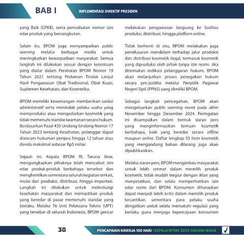 38 PENCAPAIAN KINERJA 100 HARI | KEPALA BPOM 2024 TARUNA IKRAR