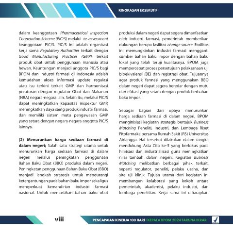 viii PENCAPAIAN KINERJA 100 HARI | KEPALA BPOM 2024 TARUNA IKRAR