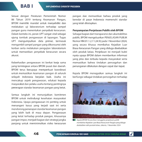 46 PENCAPAIAN KINERJA 100 HARI | KEPALA BPOM 2024 TARUNA IKRAR