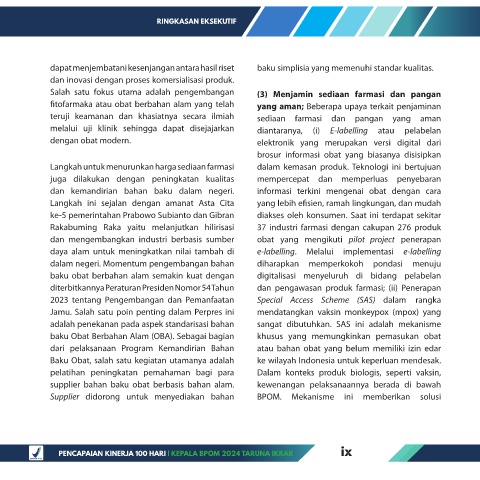 Salah satu fokus utama adalah pengembangan (3) Menjamin sediaan farmasi dan pangan