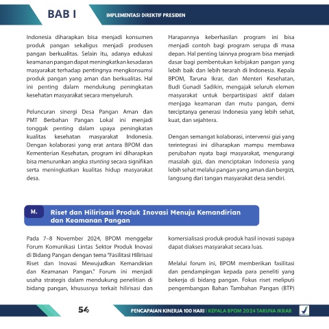 54 PENCAPAIAN KINERJA 100 HARI | KEPALA BPOM 2024 TARUNA IKRAR