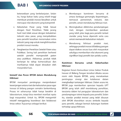 56 PENCAPAIAN KINERJA 100 HARI | KEPALA BPOM 2024 TARUNA IKRAR