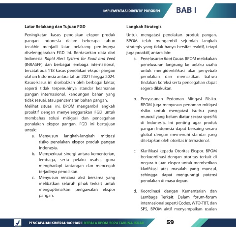 b. Memperkuat sinergi antara kementerian, c. Klarifikasi kepada Otoritas Ekspor. BPOM