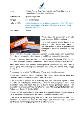Judul : Vaksin Corona Tuai Polemik Halal atau Tidak, Ma'ruf Amin