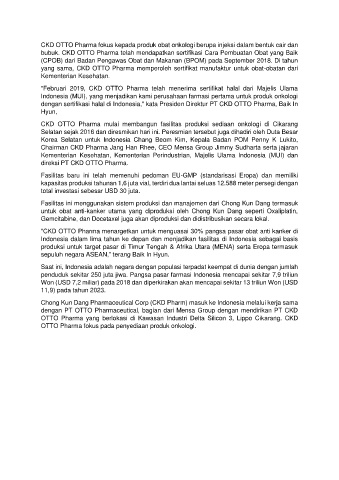 "Februari 2019, CKD OTTO Pharma telah menerima sertifikat halal dari Majelis Ulama