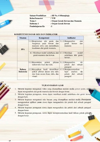 2. Melalui kegiatan penugasan, siswa dapat membuat model sederhana alat gerak hewan