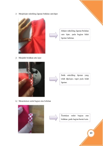j) Menjahit belahan satu lajur