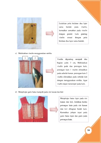 d) Menjelujur garis batas kampuh pada sisi kanan dan kiri
