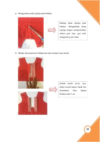 g) Menggunting tanda segitiga pada belahan