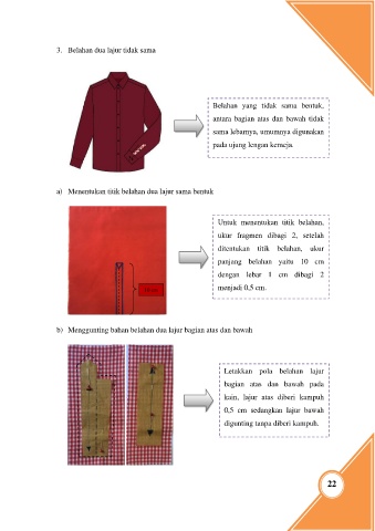 b) Menggunting bahan belahan dua lajur bagian atas dan bawah