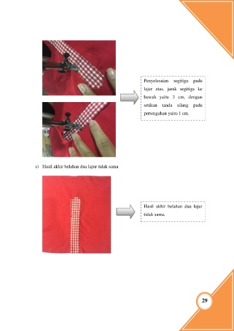 Penyelesaian segitiga pada lajur atas, jarak segitiga ke bawah yaitu 3 cm, dengan setikan tanda silang pada pertengahan yaitu 1 cm. s) Hasil akhir belahan dua lajur tidak sama Hasil akhir belahan dua lajur tidak sama. 29