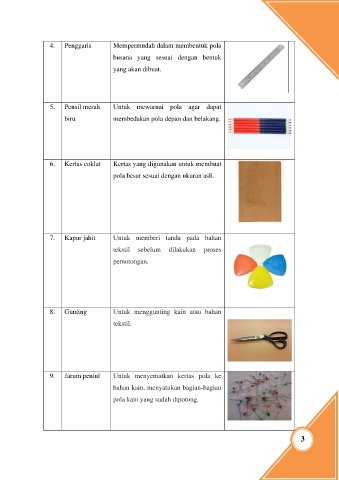 9. Jarum pentul Untuk menyematkan kertas pola ke