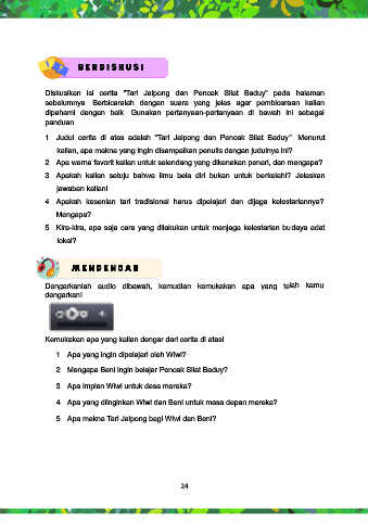 Diskusikan isi cerita "Tari Jaipong dan Pencak Silat Baduy" pada halaman