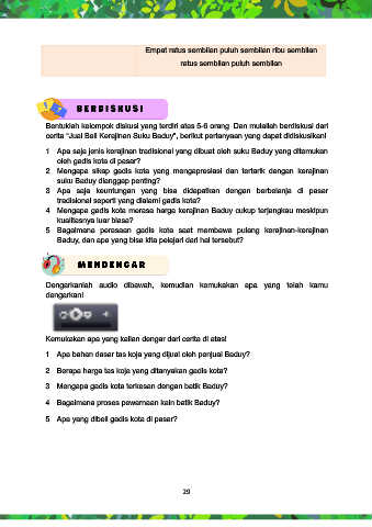 cerita “Jual Beli Kerajinan Suku Baduy”, berikut pertanyaan yang dapat didiskusikan!
