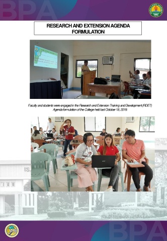 RESEARCHAND EXTENSIONAGENDA FORMULATION FacultyandstudentswereengagedintheResearchandExtensionTrainingandDevelopment(RDET) AgendaformulationoftheCollegeheldlastOctober18,2019.