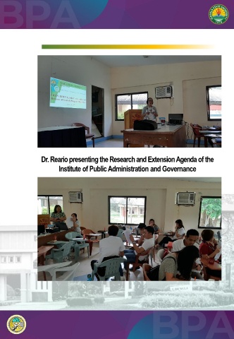 Dr.ReariopresentingtheResearchandExtensionAgendaof the Institute of Public Administration and Governance
