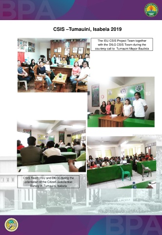 CSIS –Tumauini, Isabela 2019 The ISU CSIS Project Team together with the DILG CSIS Team during the courtesy call to Tumauini Mayor Bautista CSIS Team (ISU and DILG) during the orientation of the Citizen Satisfaction Survey in Tumauini, Isabela